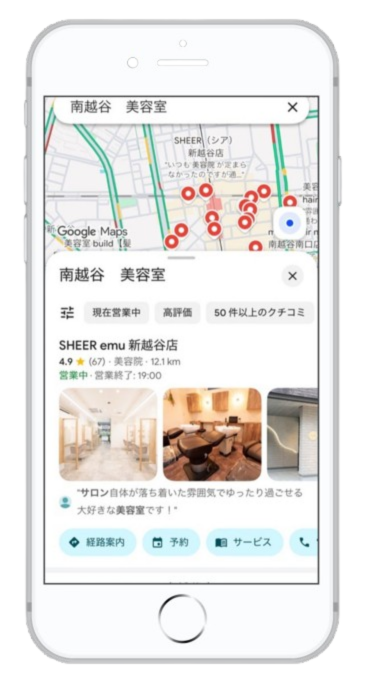 目的を持ってお店を探しているユーザーに対し、期待通りの情報を提示できれば、タップひとつで電話問合せや予約につなげたり、経路案内で迷わず来店させたりすることに繋がります。
